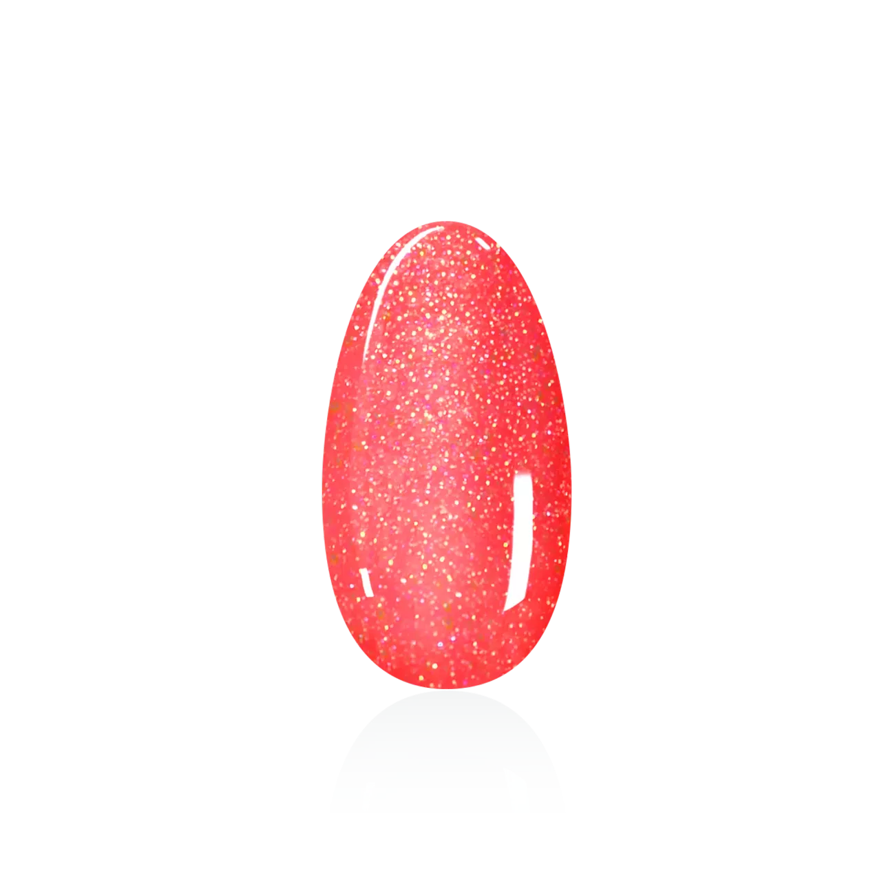Prepare the nails and file them into shape. Apply a thin layer of Glitter Gel and cure. Apply a second layer and cure as well. Then seal with a sealing gel.